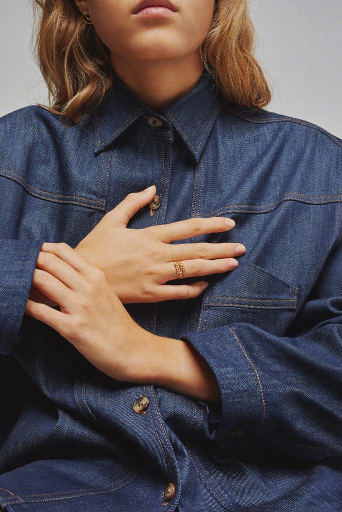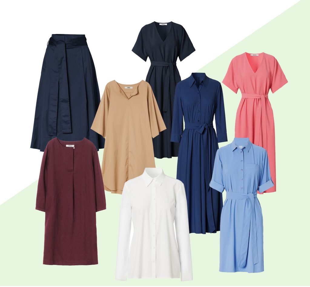Die Blusen sind gesmokt, geknöpft oder gerafft, mit Rundhals- oder Henley-Ausschnitt oder einem Matrosenkragen. Gerade Hosen, Kostümhosen, Boyfriend-Hosen oder Jogger Pants lassen sich nach Herzenslust mit allen Stücken der Kollektion kombinieren. Grobstrick-Pullover, delikat bestickte Hemdkleider, Blazer mit Gürtel. Jeder Look bietet eine Fülle von schönen Stücken.